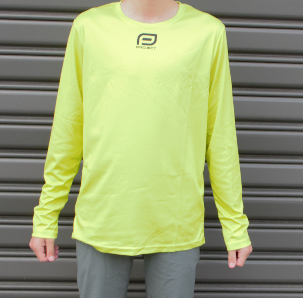 • crew neckline & long sleeves for cooler training days or sun protection